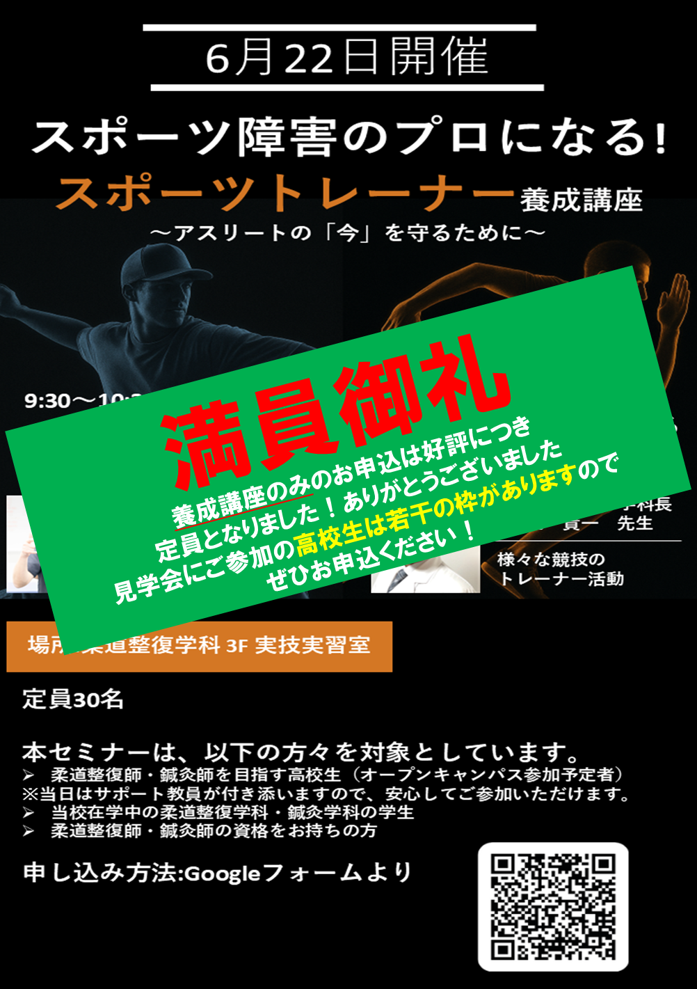 満員御礼!スポーツトレーナー養成講座のみのお申込は大好評につき