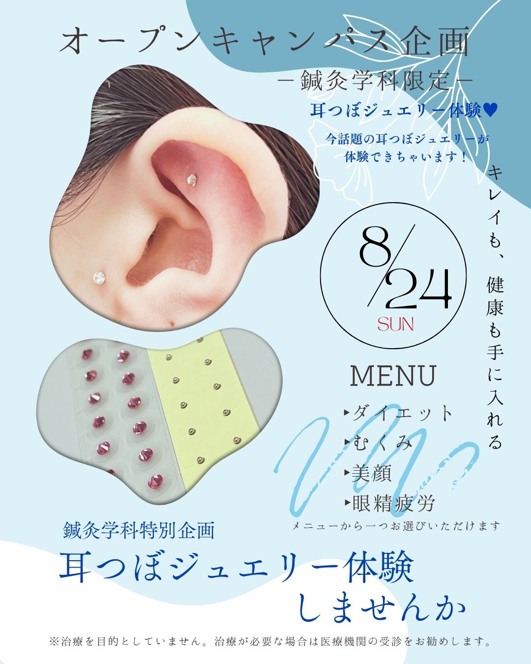 鍼灸学科では8月24日(日)のオープンキャンパスで